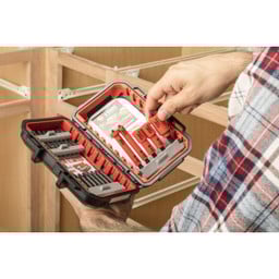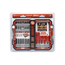 The Crescent Apex® 30-piece impact-rated fastening set with u-GUARD™ is built for the most demanding jobsites. The stack and store alphaCASE™ features a tongue and groove design with thick sidewall construction. The 30-piece set includes Crescent Apex's patented non-marring u-GUARD™ covered products which protect final finishes from damage and the core Crescent Apex® S2 steel product with optimized tip geometry for fit to the fastener. Screwdriving bit tips include square, Phillips®, Torx®, slotted, quick-release bit holder, power bit holder and magnetic nutsetters. Bits are secured in pivoting insert rails inside the case, allowing easy access to bits and case configurability.
